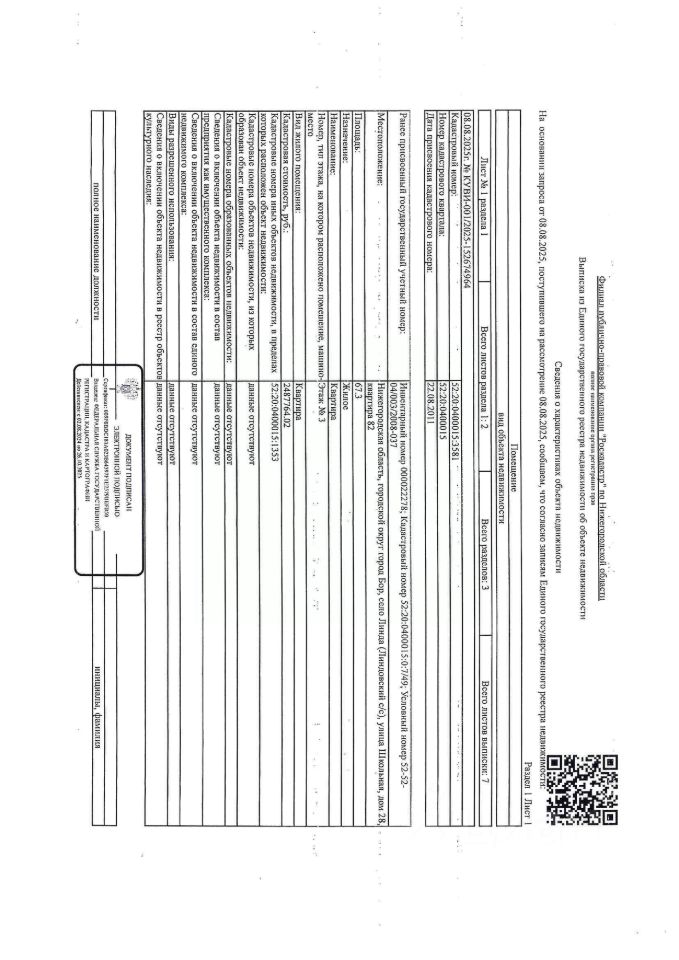 Квартира (жилое) общей площадью 67,3 кв.м, этаж 3, кол-во зарегистрированных 3 человека (из них один несовершеннолетний, один зарегистрирован временно), кадастровый (или условный) номер 52:20:0400015:3581. Адрес: Нижегородская обл., г. Бор, с. Линда, ул. Школьная, д. 28, кв. 82. Должник Войченко Д.А.