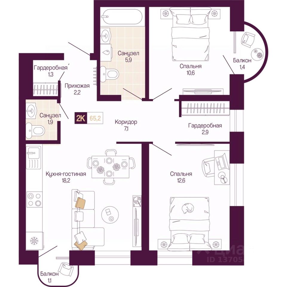 2-комн. квартира с предчистовой отделкой в ЖК "ИДЕЛЬ. Квартал на Сенной" на 4 этаже. Общая площадь: 63.4 кв.м., жилая: 23.2 кв.м., площадь просторной кухни-столовой: 18.2 кв.м. Угловая квартира, очень светлая, естественная вентиляция при открытии окон. В квартире два балкона, один совмещенный и один раздельный санузел. Высота потолков 3.0 м.
