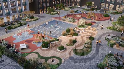 Закрытые дворы с игровыми, спортивными площадками, тихими уголками для отдыха, йога-сквер и зона общественных огородов для семейного досуга. За пределами квартала детский сад на 200 мест (сдается в 2028 г.) и ландшафтный парк с памп-треком, скейтпарком, вело- и пешеходным маршрутами. Первый этаж займет торговый и гастро-кластер со всем необходимым для комфортной жизни наполнением. Главное место притяжения - открытая площадь с ресторанами, фонтаном, арт-объектами и лаунж-зонами.