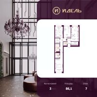 3-комн. квартира с предчистовой отделкой в ЖК "Идель. Квартал на Сенной" на 7 этаже. Общая площадь: 86.1 кв.м., жилая: 40.9 кв.м., площадь просторной кухни-столовой: 16.5 кв.м. Квартира - распашонка, без проходных комнат, окна выходят на paзные стороны дома. В квартире два совмещенных и один раздельный санузел. Высота потолков 2.8 м.