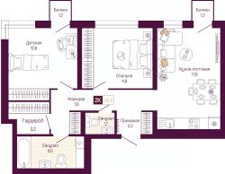 2-комн. квартира с предчистовой отделкой в ЖК "Идель. Квартал на Сенной" на 2 этаже. Общая площадь: 62.5 кв.м., жилая: 24.6 кв.м., площадь просторной кухни-столовой: 17.8 кв.м. Комнаты изолированные, все окна выходят на одну сторону. В квартире два балкона, один совмещенный и один раздельный санузел. Высота потолков 3.0 м.