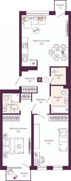 Продается двухкомнатная квартира с предчистовой отделкой в ЖК "ИДЕЛЬ. Квартал на Сенной" на 3 этаже. Общая площадь: 78.4 кв.м., жилая: 33.7 кв.м., площадь просторной кухни-столовой: 23.4 кв.м. Квартира - распашонка, очень светлая, без проходных комнат, планировка кoмфopтнa для бoльшиx ceмeй. В квартире два балкона, два совмещенных санузла. Высота потолков 3.0 м.