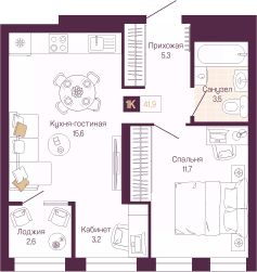 Продается однокомнатная квартира с предчистовой отделкой в ЖК "Идель. Квартал на Сенной" на 9 этаже. Общая площадь: 40.6 кв.м., жилая: 11.7 кв.м., площадь просторной кухни-столовой: 15.6 кв.м. Все окна выходят на одну сторону. В квартире одна лоджия, один совмещенный санузел. Высота потолков 3.0 м.