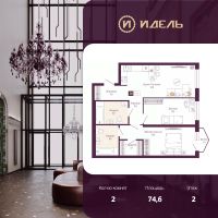Двухкомнатная квартира с предчистовой отделкой в ЖК "Идель. Квартал на Сенной" на 2 этаже. Общая площадь: 74.6 кв.м., жилая: 29 кв.м., площадь просторной кухни-столовой: 21.8 кв.м. Комнаты изолированные, все окна выходят на одну сторону. В квартире один балкон, два совмещенных санузла. Высота потолков 3.0 м.