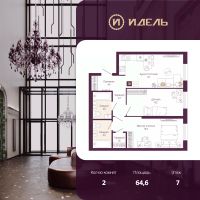 Продается двухкомнатная квартира с предчистовой отделкой в ЖК "Идель. Квартал на Сенной" на 7 этаже. Общая площадь: 64.6 кв.м., жилая: 23 кв.м., площадь просторной кухни-столовой: 15.9 кв.м. Комнаты изолированные, все окна выходят на одну сторону. В квартире один балкон, один совмещенный и один раздельный санузел. Высота потолков 2.8 м.