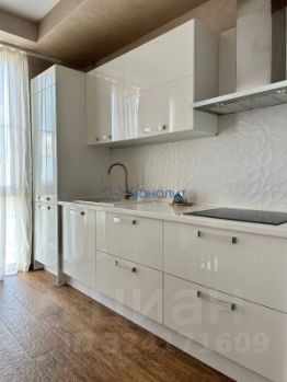 Установлен качественный кухонный гарнитур со встроенной техникой (посудомоечная машина, варочная индукционная панель, духовой шкаф, холодильник, вытяжка).