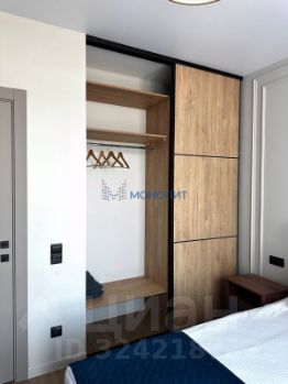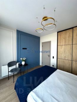 В спальне встроен гардеробный шкаф, который маскируется в интерьере.