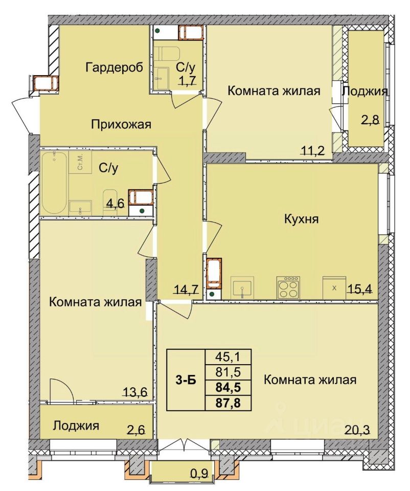 Продаётся 3-комнатная квартира в строящемся доме (дом 14А), срок сдачи: I-кв. 2026, общей площадью 84.5 кв.м., на 13 этаже. Новый жилой комплекс "Тетра" от застройщика "Комфорт Строй" расположен по адресу: Нижний Новгород, 1-я Оранжерейная улица.