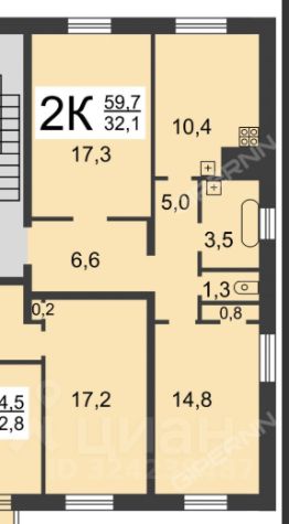 59,5 м²