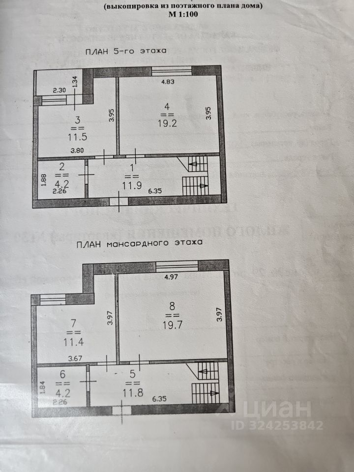 В квартиру предусмотрено два отдельных входа с площадок на 5 и 6 этажах, по-сути это 2 одинаковых по планировке 2х комнатных квартиры, лестница внутри помещения, указаная на плане сейчас демонтирована в пользу дополнительных двух комнат, по одной на этаже, но легко может быть установлена новым собственником. Чистая продажа, юридчески чистый объект, никто не прописан.