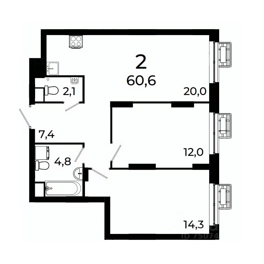 Продается 2-комнатная квартира площадью 60,6 кв.м на 2 этаже 19 этажного дома 3 в ЖК Сормово Парк.