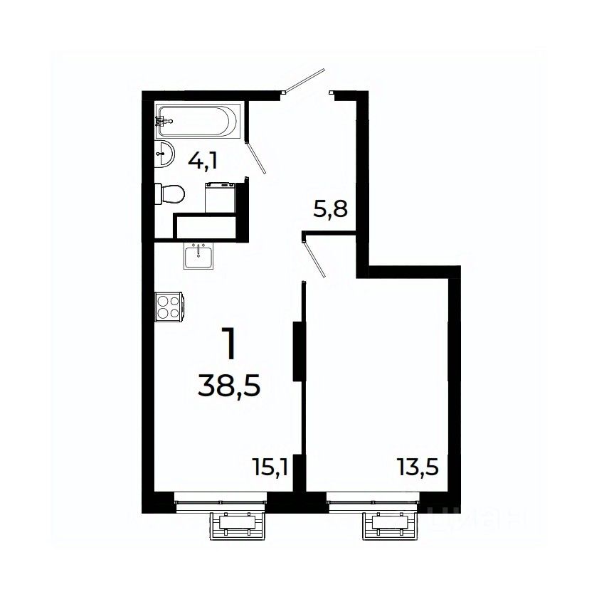 Продается 1-комнатная квартира площадью 39,2 кв.м на 2 этаже 19 этажного дома 3 в ЖК Сормово Парк.