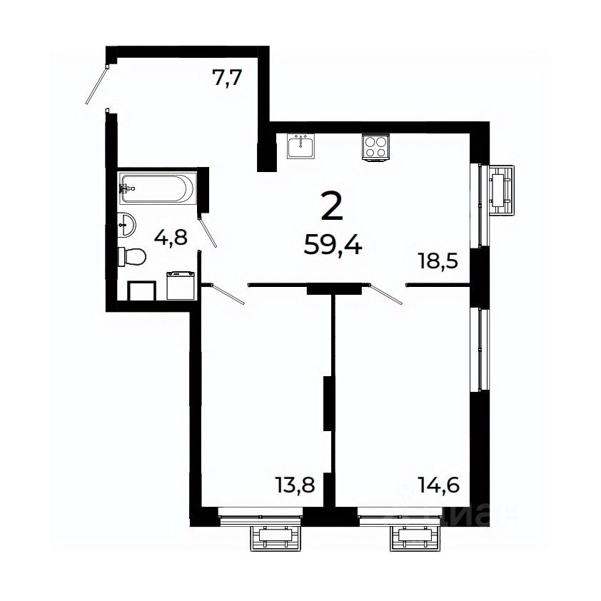 Продается 2-комнатная квартира площадью 59,4 кв.м на 3 этаже 19 этажного дома 3 в ЖК Сормово Парк.