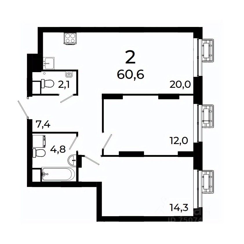 Продается 2-комнатная квартира площадью 60,6 кв.м на 4 этаже 19 этажного дома 3 в ЖК Сормово Парк.