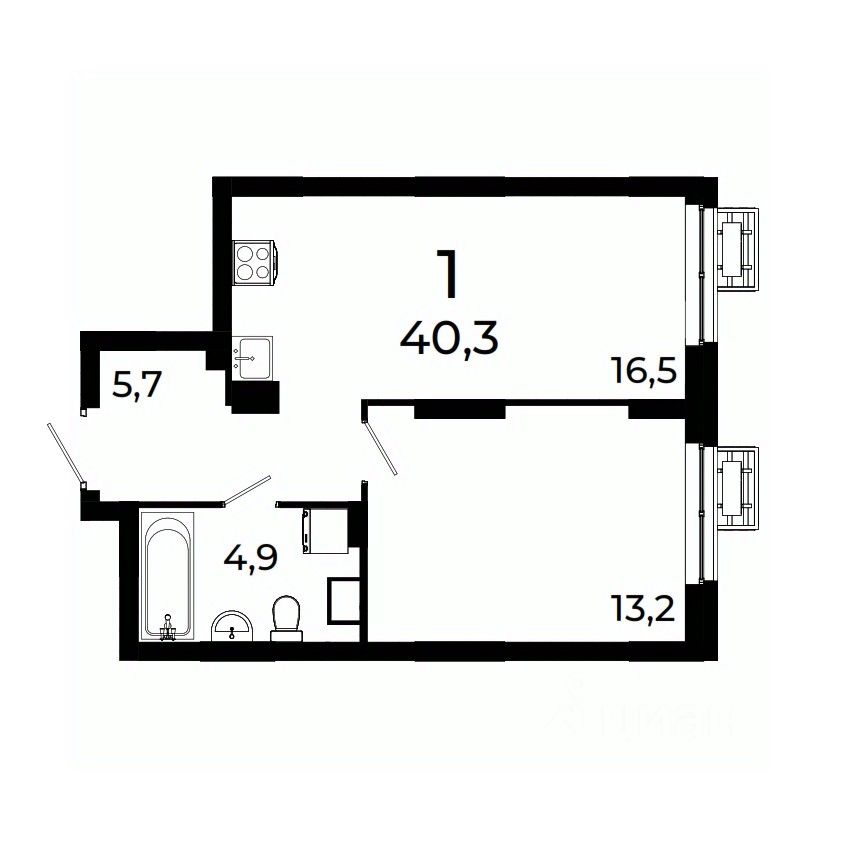 Продается 1-комнатная квартира площадью 40,3 кв.м на 8 этаже 19 этажного дома 3 в ЖК Сормово Парк.