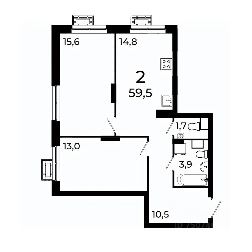 Продается 2-комнатная квартира площадью 59,5 кв.м на 9 этаже 19 этажного дома 3 в ЖК Сормово Парк.