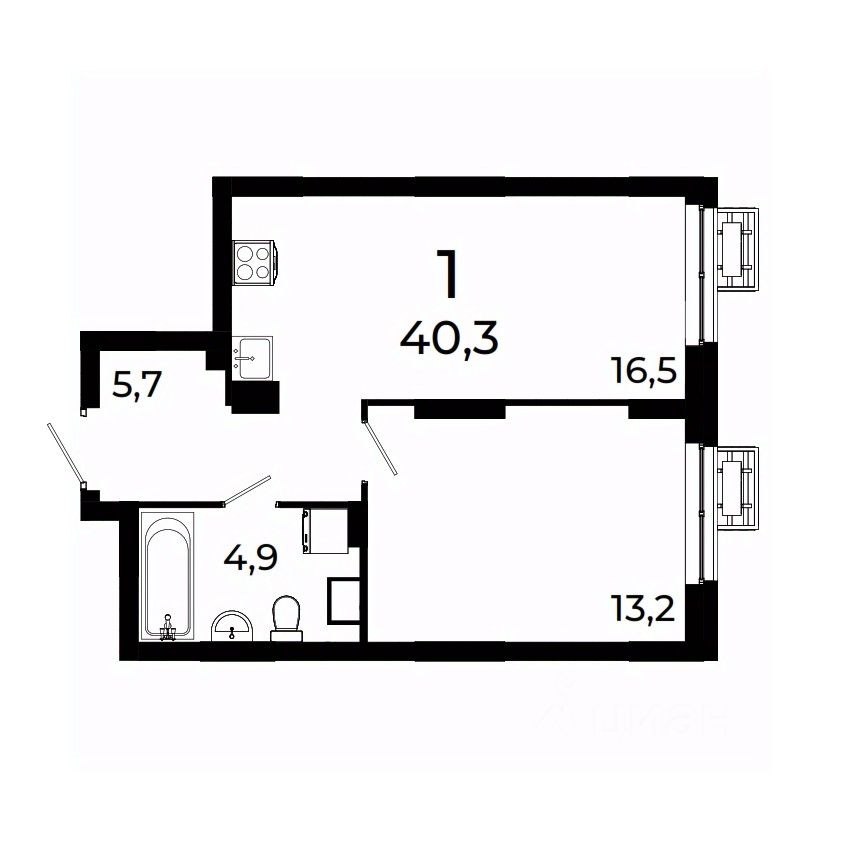 Продается 1-комнатная квартира площадью 40,3 кв.м на 13 этаже 19 этажного дома 3 в ЖК Сормово Парк.