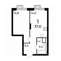 Продается 1-комнатная квартира площадью 37,6 кв.м на 13 этаже 19 этажного дома 3 в ЖК Сормово Парк.
