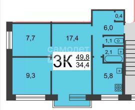 Предлагаю к продаже трёхкомнатную квартиру, расположенную на 5 этаже 5 этажного панельного дома 6-й микрорайон д.3. Общая площадь 50,3 кв.м., комнаты смежно-изолированные 17,3+9.2+ 7,6 кв.м. Имеется балкон. Удобная и вместительная прихожая, квадратной формы. Санузел раздельный.