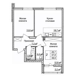 Продаётся 2-комнатная квартира в сданном доме (пр. Героев Донбасса, 12 (дом 9, 2 оч)), срок сдачи: III-кв. 2025, общей площадью 58.9 кв.м., на 2 этаже. Жилой комплекс "Новая Кузнечиха" расположен в Советском районе Нижнего Новгорода рядом с двумя излюбленными местами отдыха Ботаническим садом и Щелоковским хутором. В непосредственной близости от комплекса несколько школ, детских садов, поликлиник, торгово-развлекательных центров, остановок общественного транспорта с развитой сетью маршрутов.