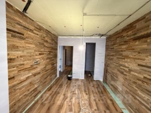 В квартире выполнен дизайнерский ремонт с применением декоративной штукатурки, амбарной доски, диекоративного клинкера.