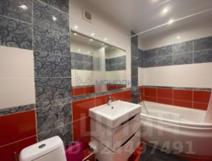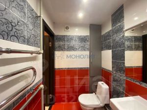 Совмещённый санузел выполнен с использованием современной плитки.