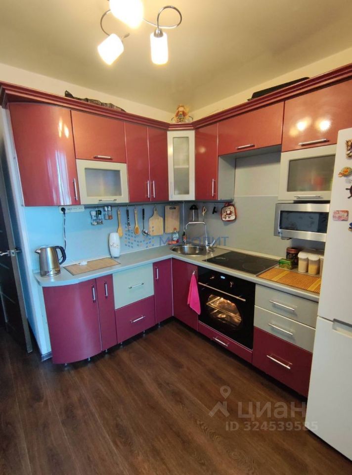 Пластиковые окна, натяжные потолки, на полу в комнате ламинат, на кухне линолеум.