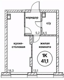 Общая площадь41,1 м²