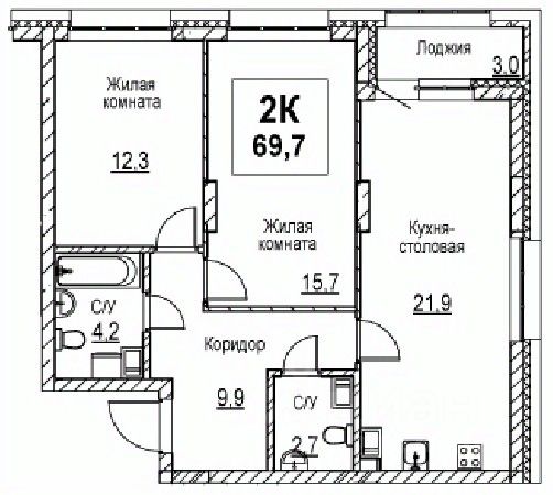 Общая площадь69,7 м²