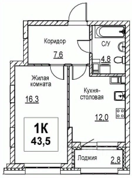Общая площадь43,5 м²