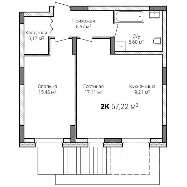 Продаётся 2-комнатная квартира в строящемся доме (дом 9), срок сдачи: I-кв. 2027, общей площадью 57.22 кв.м., на 1 этаже. ЖК "Зенит" находится на территории бывшего зенитно-ракетного училища в Советском районе Нижнего Новгорода. Это тихое место недалеко от центра города. В экологическом отношении данный район является одним из наиболее благоприятных и престижных районов Нижнего Новгорода. С одной стороны объекта расположена зона отдыха Щелковский хутор - обширная лесная территория с тремя озерами, с другой стороны - центральный парк Швейцария - традиционное место отдыха горожан.