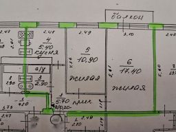 Квартира расположена на третьем этаже в панельном доме "хрущевской" застройки. Общая площадь квартиры 43,3 кв.м., жилая площадь 28,3 кв.м., кухня 5,4 кв.м., комнаты изолированы, балкон, санузел совмещен.