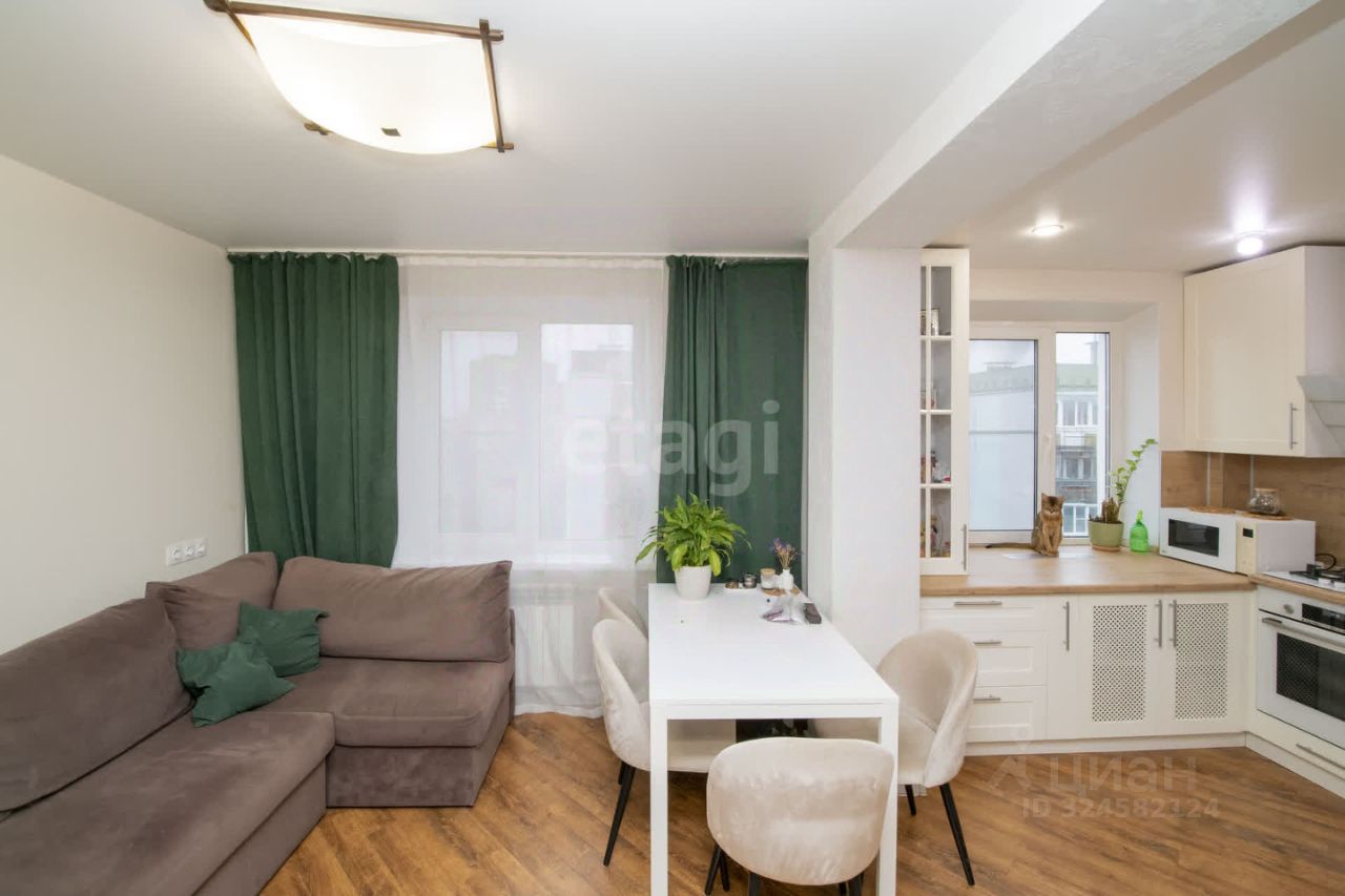 Квартира с продуманной перепланировкой: объединены кухня и комната , что создает просторную гостиную.