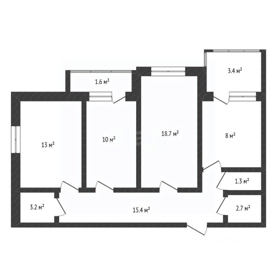 • Просторная планировка: 3 изолированные комнаты, кухня с обеденной зоной