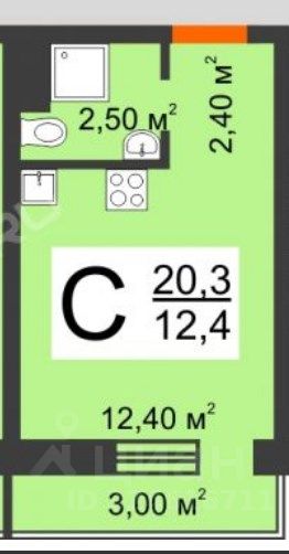 Общая площадь с учётом балкона 20 кв. м