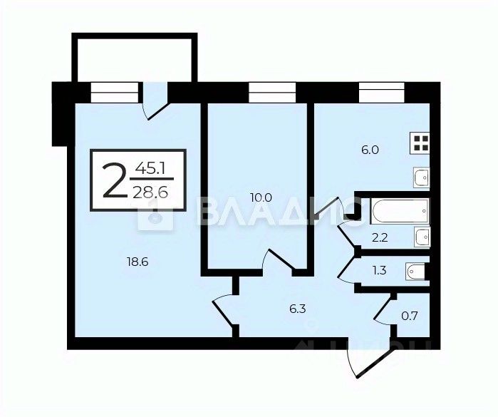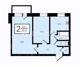 Площадь: 44,1 м²