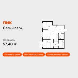 Продаётся 2-комн. квартира площадью 57,4 кв.м на 19 этаже 25 этажного дома (Корпус 10, Секция 1) проекта ПИК Савин парк. Светлый просторный подъезд на уровне земли, функциональная планировка, большие окна, c отделкой.