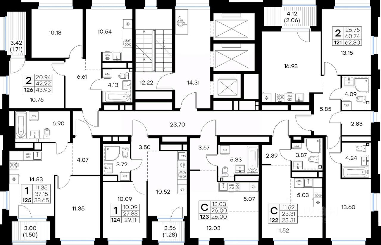 Продается 2-комн. квартира на 22-м этаже в строящемся проекте бизнес-класса GloraX Левобережный. Общая площадь лота составляет 62,80 кв. м, из которых 26,75 кв. м отведено под жилую и 16,98 кв. м под кухонную зону. Номер квартиры - 121.