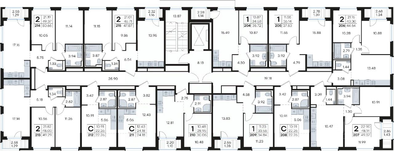 Продается квартира-студия на 9-м этаже в строящемся проекте комфорт-класса GloraX Новинки. Общая площадь лота составляет 22,26 кв. м, из которых 10,91 кв. м отведено под жилую и 5,06 кв. м под кухонную зону. Номер квартиры - 208.