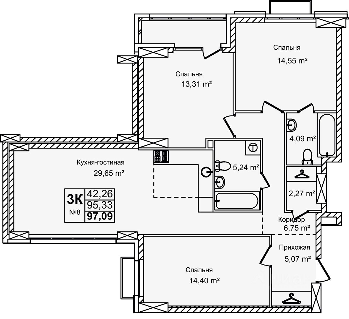 Общая площадь97,09 м²