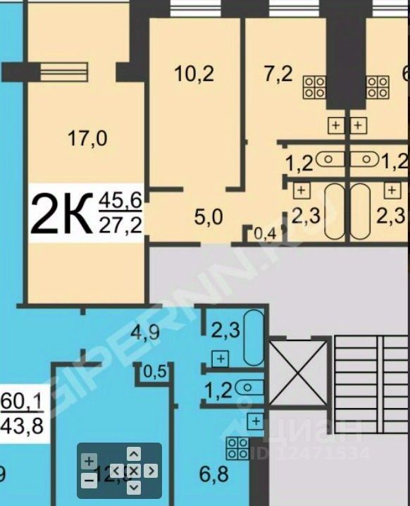 44,9 м²