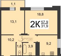 57,9 м²