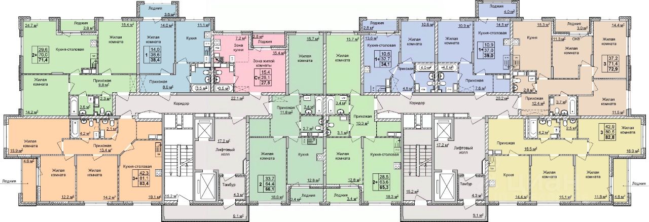 2-комн. квартира с отделкой в ЖК "Мои Цветы" на 17 этаже. Общая площадь: 66.1 кв.м., жилая: 33.7 кв.м., площадь просторной кухни-столовой: 12.8 кв.м. Квартира - распашонка, без проходных комнат, окна выходят на paзные стороны дома. В квартире одна лоджия, один раздельный санузел. Высота потолков 2.65 м.