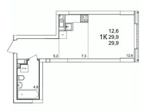 Продаётся 1-комнатная квартира в строящемся доме (54), срок сдачи: III-кв. 2027, общей площадью 29.9 кв.м., на 13 этаже. Расположение, транспортная доступность