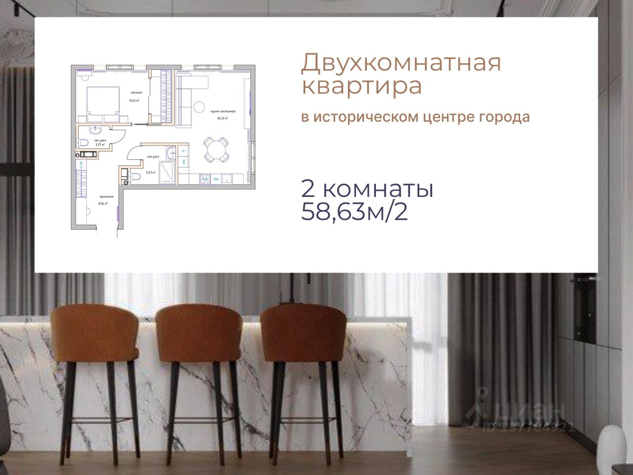 Общая площадь58,63 м²