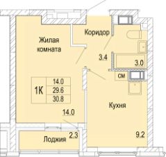 Однокомнатная квартира от застройщика с отделкой в ЖК "Кузнечиха город" на 7 этаже. Общая площадь: 30.8 кв.м., жилая: 14 кв.м., площадь просторной кухни-столовой: 9.2 кв.м. Все окна выходят на одну сторону. В квартире одна лоджия, один совмещенный санузел. Высота потолков 2.5 м.