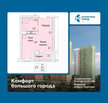 1-комн. квартира-студия от застройщика с отделкой в ЖК "Кузнечиха город" на 12 этаже. Общая площадь: 23.4 кв.м., площадь гостиной 12.7 кв.м., из которых 3.6 кв.м. выделено под кухонную зону. Все окна выходят на одну сторону. В квартире одна лоджия, один совмещенный санузел. Высота потолков 2.5 м.