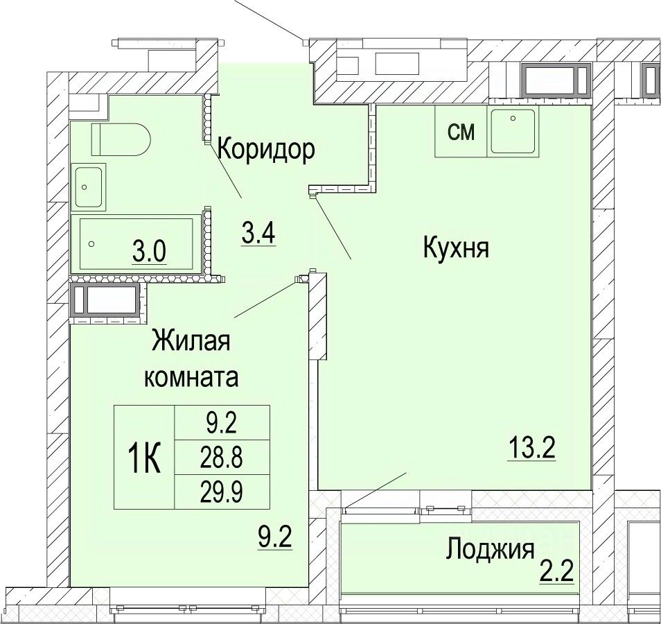 В жилых комнатах, кухне и прихожей — обои нейтрального оттенка, белые межкомнатные двери без стекол. Пол в жилых комнатах — ламинат под дуб, в кухне и прихожей — плитка. Натяжные потолки во всех помещениях. Стены и пол в ванной и санузле будут отделаны керамогранитом, в ванной установлен полный комплект сантехники, включая акриловую ванну с экраном и смесителем, тумбу для хранения под раковиной, зеркало с подсветкой. Застройщик также позаботился и о деталях, поэтому все инженерные коммуникации, стояки водоснабжения и канализации будут скрыты декоративными коробами. #Z6AIg2