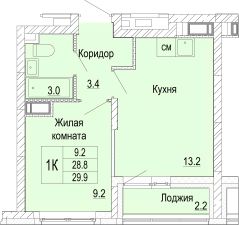 Однокомнатная квартира с отделкой в ЖК "Кузнечиха город" на 14 этаже. Общая площадь: 29.9 кв.м., жилая: 9.2 кв.м., площадь просторной кухни-столовой: 13.2 кв.м. Все окна выходят на одну сторону. В квартире одна лоджия, один совмещенный санузел. Высота потолков 2.5 м.