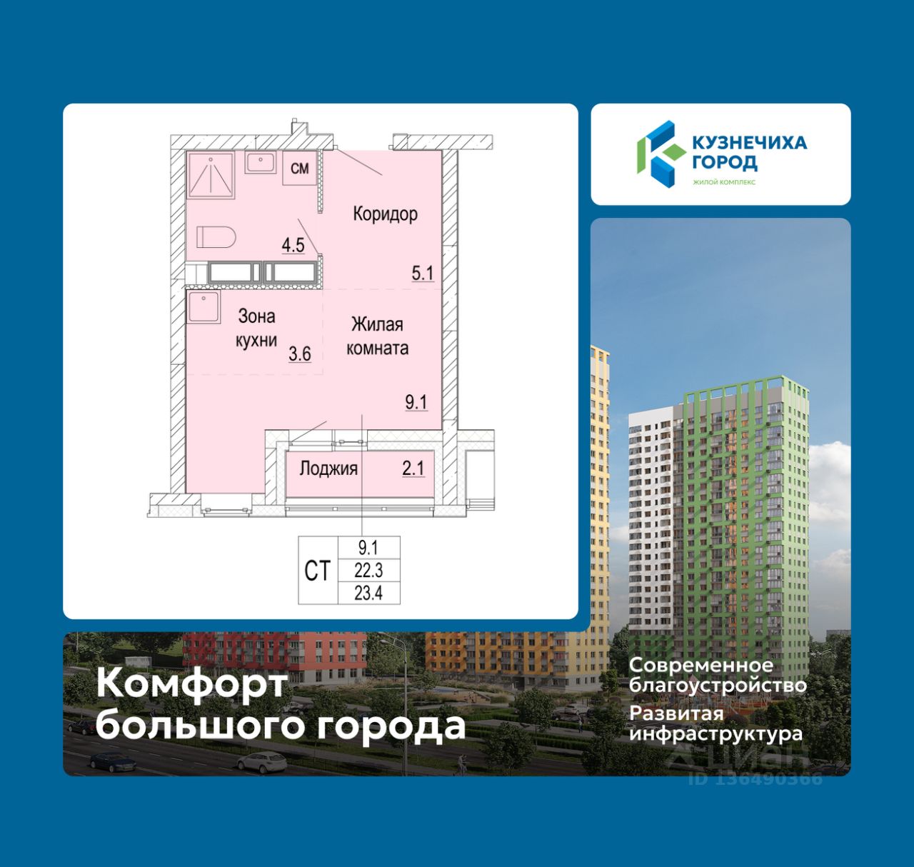 "Кузнечиха Город" это современный семейный жилой комплекс расположенный в Советском районе в окружении парков и развитой инфраструктуры. Проект ориентирован на семейную аудиторию, поэтому особое внимание уделяется благоустройству и формированию соответствующей инфраструктуры.